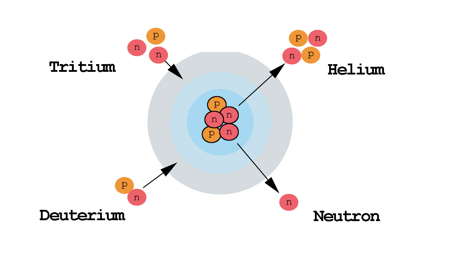 Es sei darauf hingewiesen, dass im Zentrum der Sonne bei extrem hohen Temperaturen von rund 15 Millionen Grad Celsius und einem extremen Druck von 200 Milliarden Bar Wasserstoffatome langsam und kontrolliert zu einem Heliumatom verschmelzen und damit die Energie liefert, ohne die es kein Leben auf der Erde gäbe und hier Dunkelheit und Eiseskälte herrschen würden. Das Prinzip der Kernfusion gilt für die Explosion einer Wasserstoffbombe, nur hier läuft diese Fusion ungleich schneller ab – in dem Bruchteil von Sekunden. Ein Fusionsreaktor soll durch die kontrollierte und langsame Fusion von Deuterium und Tritium (schwerer und überschwerer Wassersoff) große Mengen an Energie liefern.