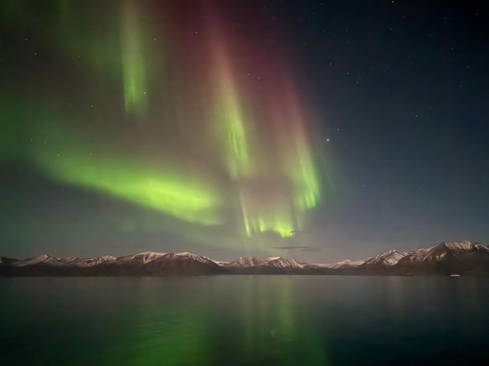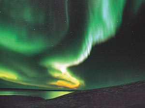 Diese Leuchterscheinungen, die in einer Höhe von etwa 100 bis weit über 200 km entstehen, können den ganzen Himmel in verschiedensten Farben erhellen. Während der Mitternachtssonne können Polarlichter nicht beobachtet werden, da der Himmel zu hell ist.