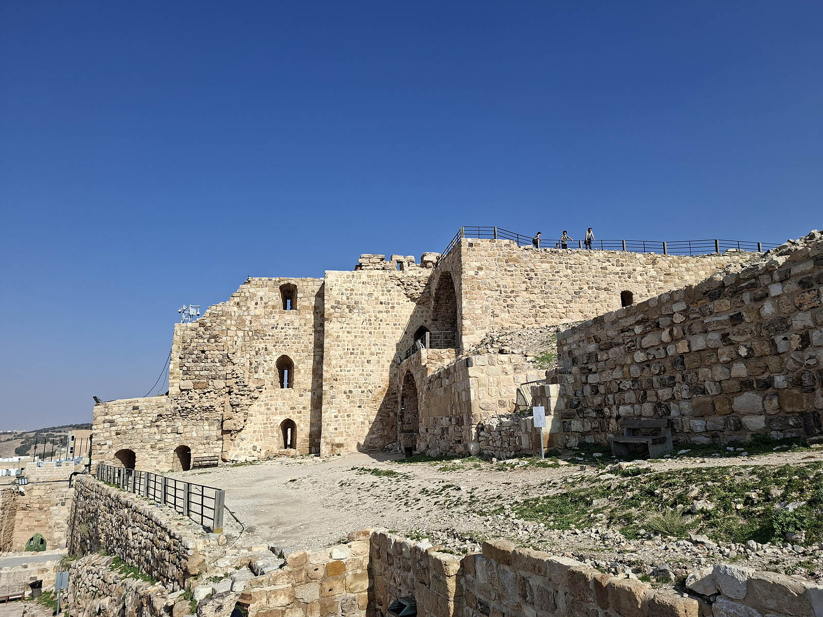 Südlich von Um er-Rasas liegt Kerak, eine Stadt der Moabiter und der Nabatäer. In der Bibel wurde sie Qer Harreseth genannt. Die Kreuzfahrer errichteten dort 1136 eine Burg, die im Jahr 1189 von den Arabern erobert wurde. Mit Hilfe dieser Burg wurden die Handelsrouten von Damaskus nach Ägypten und Mekka kontrolliert. Heute wird die Burgruine als Museum genutzt.