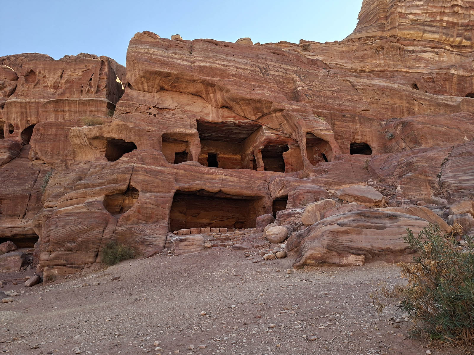 Zu diesen nebeneinander gereihten monumentalen Grabtempeln in der antiken Stadt Petra zählen das "Korinthische Grab", das "Palastgrab" und das "Urnengrab".