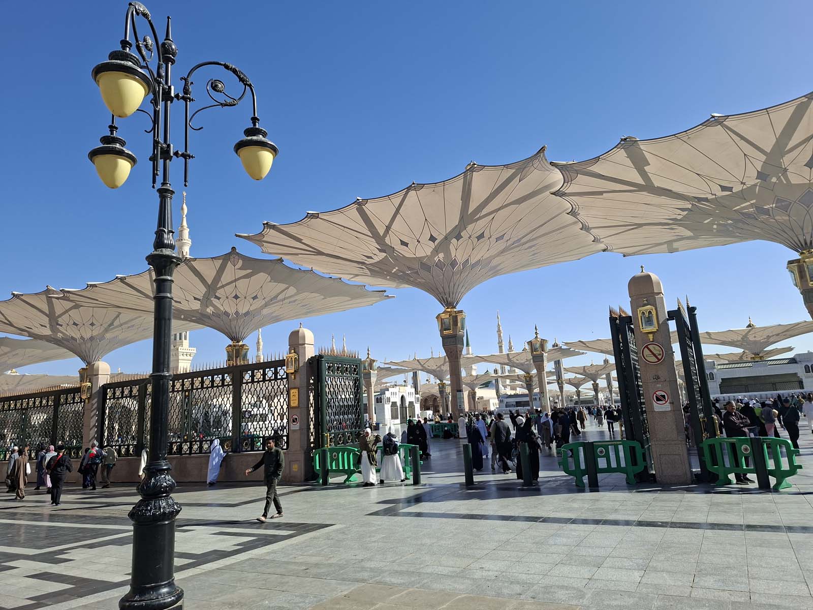 Al-Madinah (Medina) ist neben Al-Makkah (Mekka) und Al-Quds (Jerusalem) eine der heiligsten Städte des Islam. Es war hier in Al-Madinah, wohin der Prophet Muhammad (Mohammed) und seine Gefolgsleute flohen, als sie Al-Makkah, wo sie der Verfolgung ausgesetzt wurden, im Jahre 622 verlassen mussten. Die Einwohner Al-Madinahs gewährten ihm Einlass und baten ihn, unter ihnen zu leben und in ihren Angelegenheiten zu entscheiden. Es war in Al-Madinah, wo die islamische Ära und die Ausbreitung dieser jüngsten der großen monotheistischen Weltreligionen ihren Anfang nahm. Mithin gilt Al-Madinah als erste Hauptstadt des Islam. Al-Madinah ist die Stadt des Propheten (Madīnat an-Nabī), die Stadt, in welcher der Hl. Qur'an (Koran) zusammengestellt und wo die erste Gemeinschaft, die Ur-Umma, gebildet wurde. Al-Madinah war Sitz des ersten islamischen Staates, von hier gingen die Bestrebungen aus, das Wort Allahs in die Welt hinaus zu verbreiten. Al-Madinah ist auch der Ort, wo der Prophet Muhammad starb und begraben liegt. Sein Grab befindet sich in der beeindruckenden, zu Tränen rührend schönen Al-Masjid an-Nabawi (= Prophetenmoschee), auch bekannt als Qubbat al-Nabi (= "Propheten-dom" oder "Grüner Dom"). Gebaut wurde dieses atemberaubende sakrale Meisterwerk an der Stelle, wo sich früher Muhammads Wohnhaus befunden hat. Später wurde das gesamte Haus zu einem Teil der Moschee, als sie unter dem Umayyaden-Kalifen al-Waleed ibn Abd al-Malek ausgedehnt wur-de. Auch die im Jahre 623 von Muhammad gebaute Moschee wurde in die Prophetenmoschee ein-bezogen; sie ist die zweitheiligste Moschee des Islam. Die heiligste ist die Al-Masjid al-Haram in Al-Makkah und die drittheiligste die Al-Aqsa-Moschee in Al Quds (Jerusalem). In Al-Madinah steht auch die allererste Moschee des Islam, die Masjid Quba. Sie gilt als das viertheiligste islamische Gotteshaus. Heutzutage hat Medina rund 1,8 Millionen