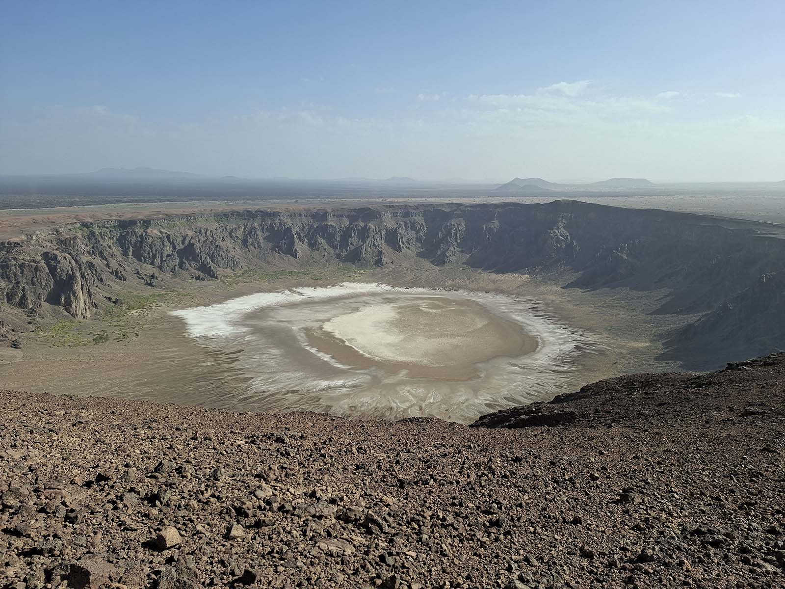 erstreckt, die Siedlung Hajar. Diese war am Zusammenstrom mehrere Flüsse entstanden. Die Flüsse sind im Laufe der Jahrhunderte ausgetrockent und heute nur noch als Wadis erhalten geblieben, doch damals sorgten sie für einen fruchtbaren Boden, denn Riad bedeutet Platz der Gärten und Bäume (rawdah).