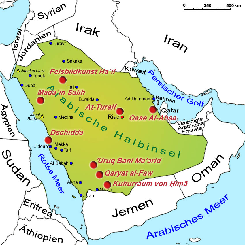 Die Archäologische Stätte Al-Hijr wurde im Jahr 2008 in die Liste der UNESCO-Weltkulturerbestätten eingetragen