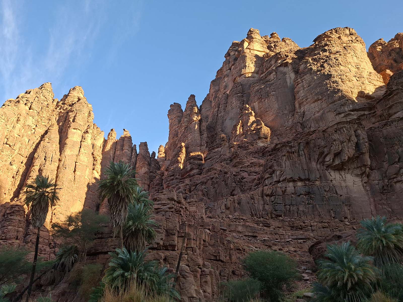 Man findet hier u.a. Überreste aus der Zeit der Nabatäer sowie antike Inschriften. Es liegt im Prinz-Mohammed-bin-Salman-Naturschutzgebiet - rund 220 bis 260 km südlich von Tabuk City. Die Schlucht bietet eine spektakuläre Mischung aus Wüste und Oase, ideal zum Wandern und Entdecken. Man kann hier Wanderungen durch die Schlucht unternehmen, Picknicks unter Palmen genießen, sowie fotografieren oder sich am leuchtenden Sternenhimmel erfreuen