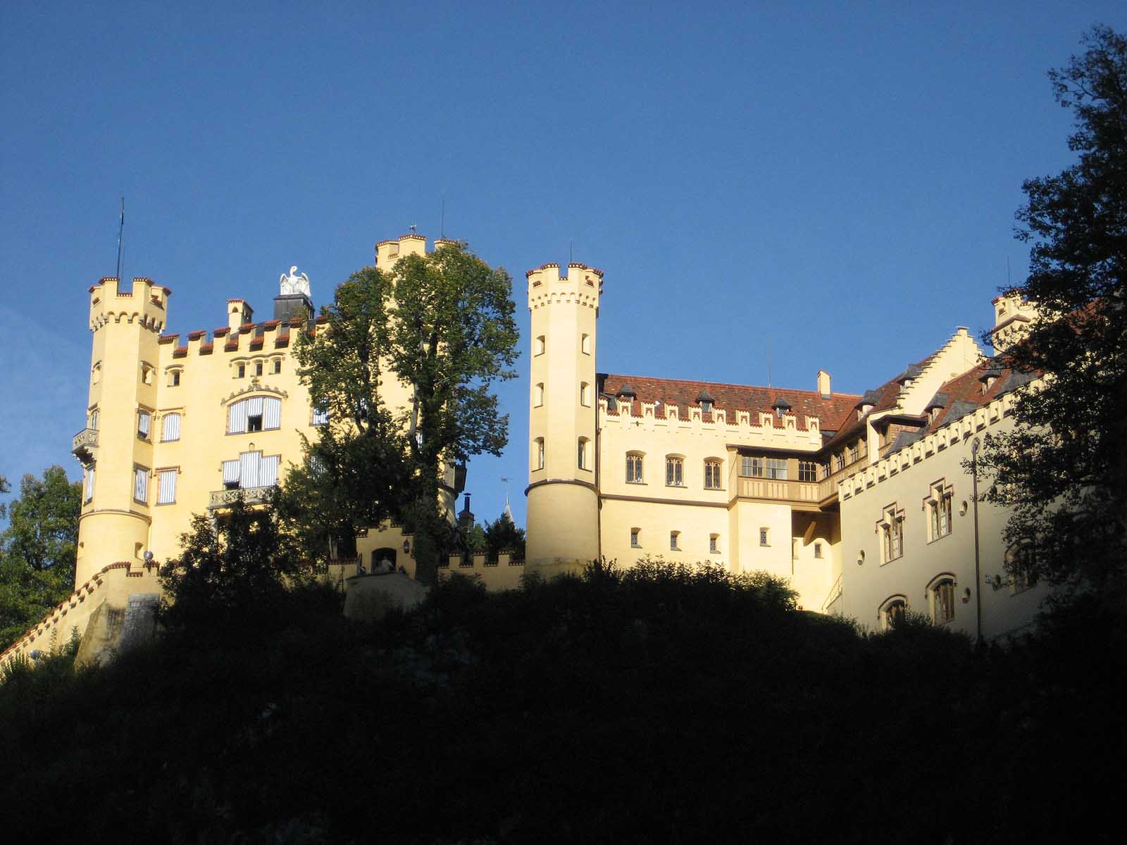 Dieses Schloss ist ganz in der Nähe von Schloss Neuschwanstein gelegen und im hellen Gelb auf einer Anhöhe weithin sichtbar. Es wurde von König Maximilian II. von Bayern im Jahr 1836 auf den Resten der Stammburg der Ritter von Schwangau aus dem 12. Jahrhundert als Sommersitz errichtet. Es war das Elternhaus Ludwigs II. von Bayern.