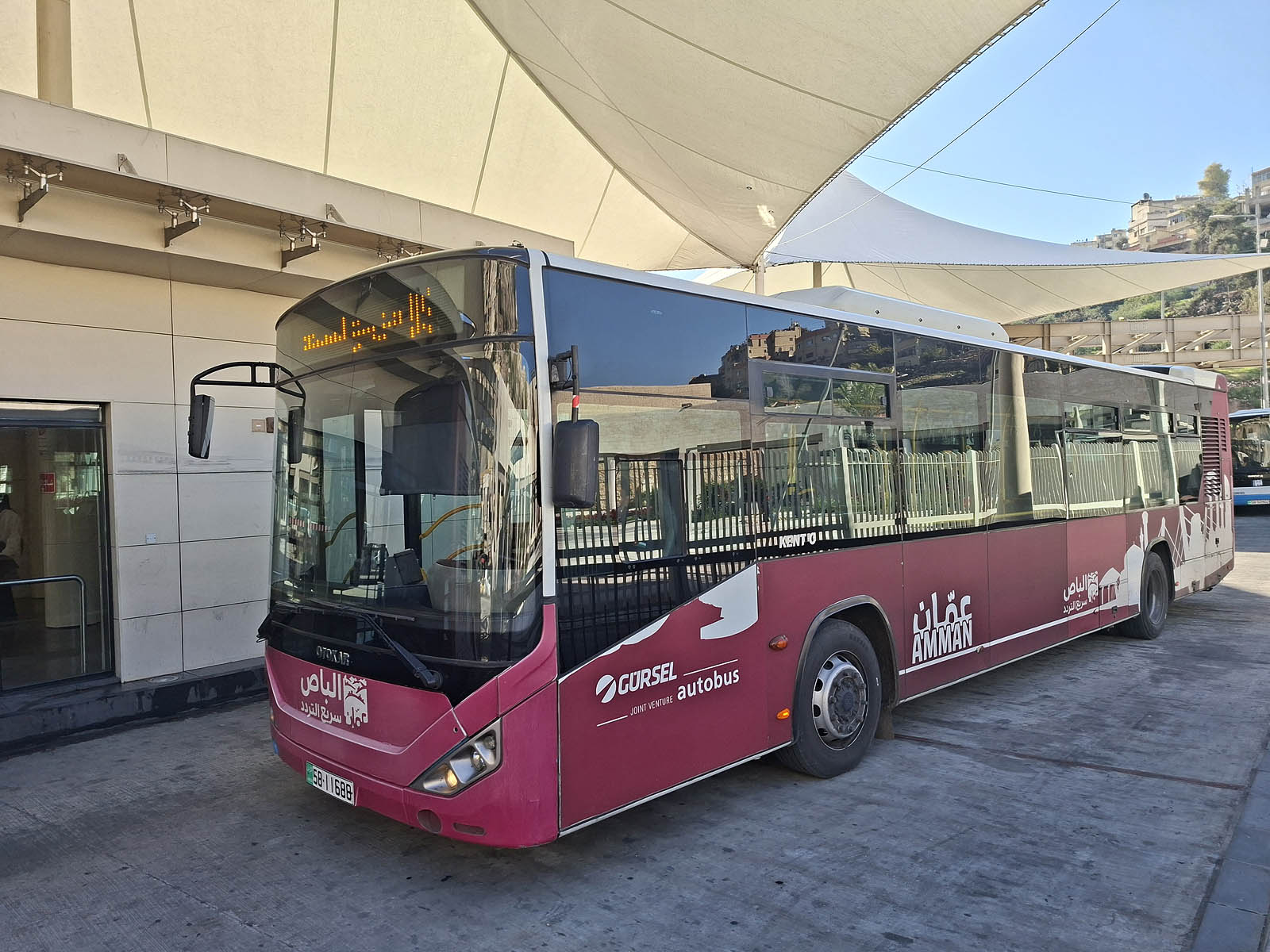 Bequeme Airport-Express-Busse fahren zwischen 7:15 und 21:15 Uhr stündlich vor dem Ankunftsterminal des Queen Alia International Airport Richtung Innenstadt ab. Weitere Busse pendeln zwischen dem Flughafen und den nördlichen Teilen der Stadt. Der genaue Zielort sollte vor dem Einstieg geklärt werden. Gepäck kostet extra. In Amman fahren auch Stadtbusse, indes sind die Zielorte leider nur in Arabisch angegeben.