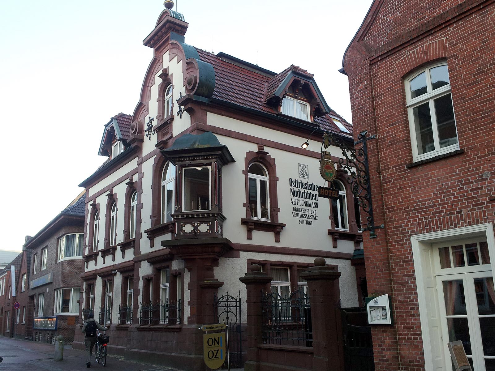 Die Ostfriesische Landschaft hat ihren Sitz im Landschaftshaus. Das Gebäude wurde zwischen 1898 und 1901 nach Entwürfen des seinerzeit in Hannover ansässigen Architekten Hermann Schaedtle (1857-1931) im Stil der Neorenaissance errichtet. Hier befindet sich auch die Landschaftsbibliothek, die größte wissenschaftliche Bibliothek in ganz Ostfriesland.