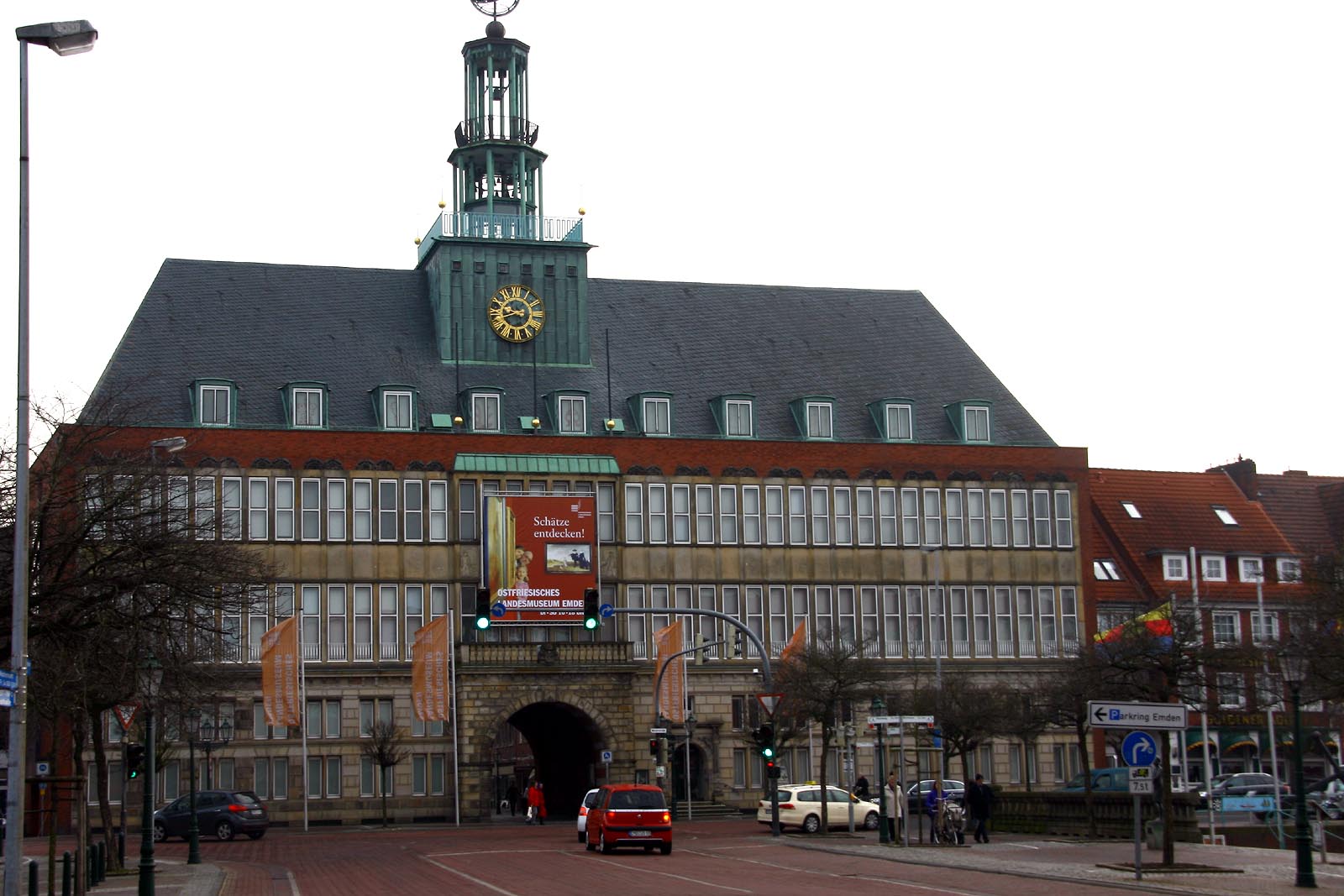 Das Rathaus von Emden wurde, wie der größte Teil der Stadt, ein Opfer der Bomben; es war am 6. November 1944. Aber die Emder Bürger haben es zwischen 1959 und 1962 wieder aufgebaut. Das "alte" Rathaus wurde zwischen 1574 und 1576 errichtet.