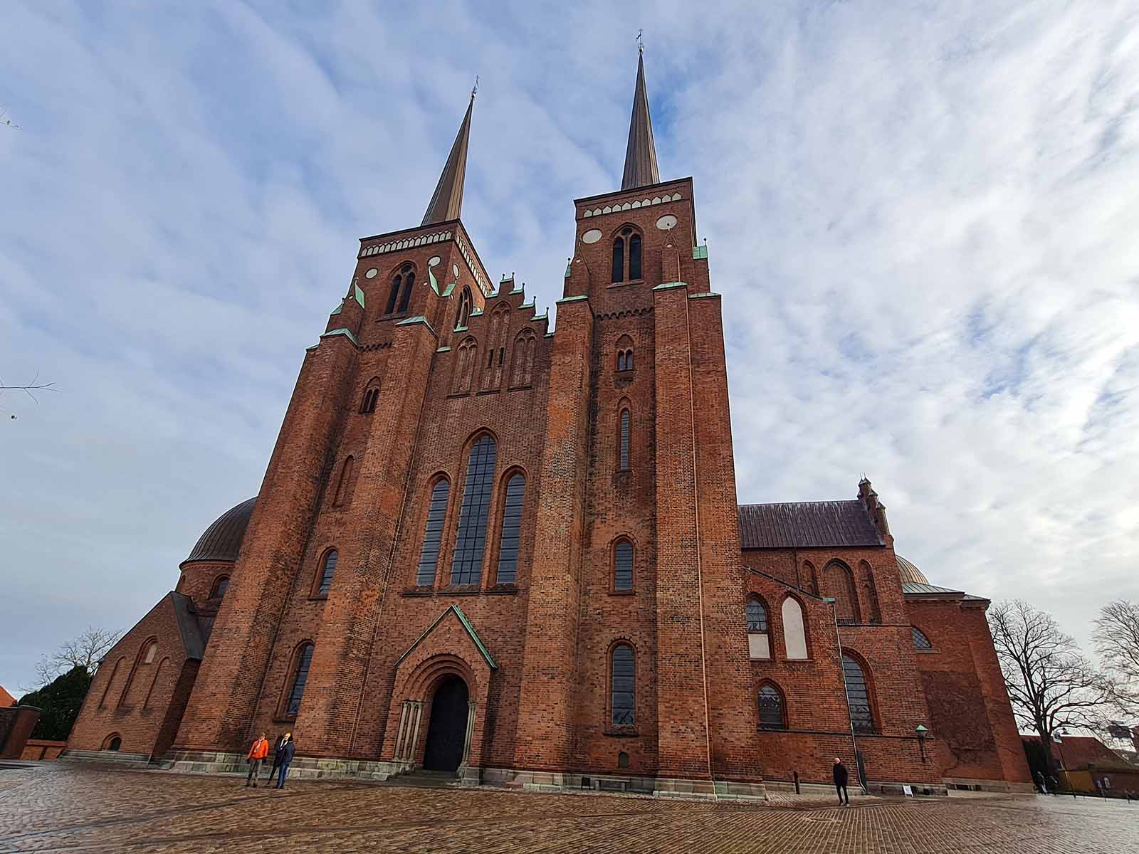 König Blauzahn, der um 987 verstarb, erbaute eine Holzkirche, wobei der erste Bischof um das Jahr 1022 inthronisiert wurde. Um 1080 entstand an der Stelle des heutigen Doms eine neue Kirche aus Kalksteinen (Travertin). Um 1280 wurde der heutige Dom als erstes Bauwerk im Stil der Gotik errichtet und ist damit der erste gotische Dom in Skandinavien aus Backsteinen und trug damit maßgeblich zur Verbreitung der Backsteingotik bei. Die beiden rund 70 m hohen Westtürme stammen aus dem 14. Jahrhundert, kann über 400 Stufen bestiegen werden. Nachdem Christian III. (1503.1559) im Jahr 1536 die Reformation eingeführt und die katholische Kirche verboten hatte, wurde der Dom evangelisch.