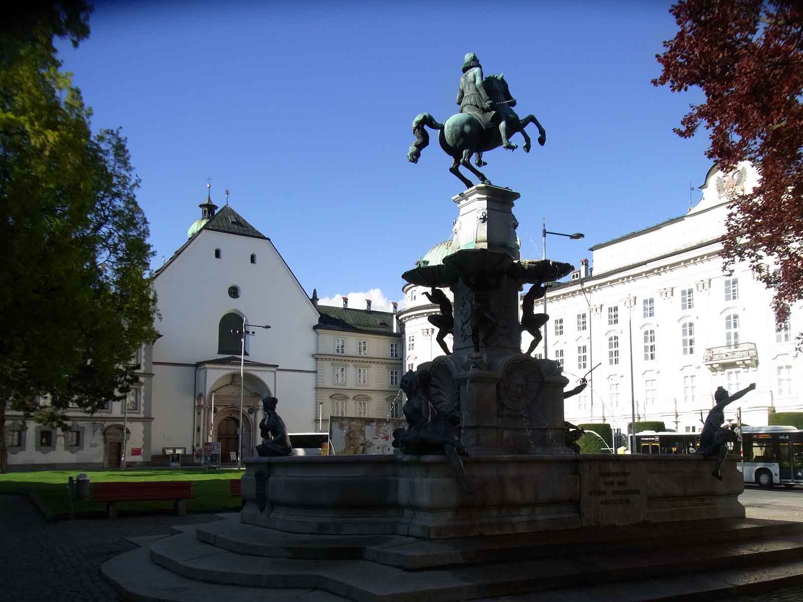 Der Leopoldsbrunnen befindet sich nahe der Altstadt von Innsbruck - in der Nähe des Landestheaters Innsbruck.