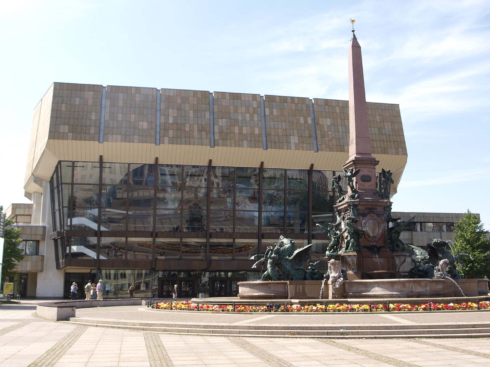 Nachdem das "Neue Theater" der Stadt im Zweiten Weltkrieg zerstört worden war, wurde an derselben Stelle ein neues, modernes Opernhaus erbaut, das in seiner spätklassizistischen Bauweise an das zerstörte Gebäude erinnert.