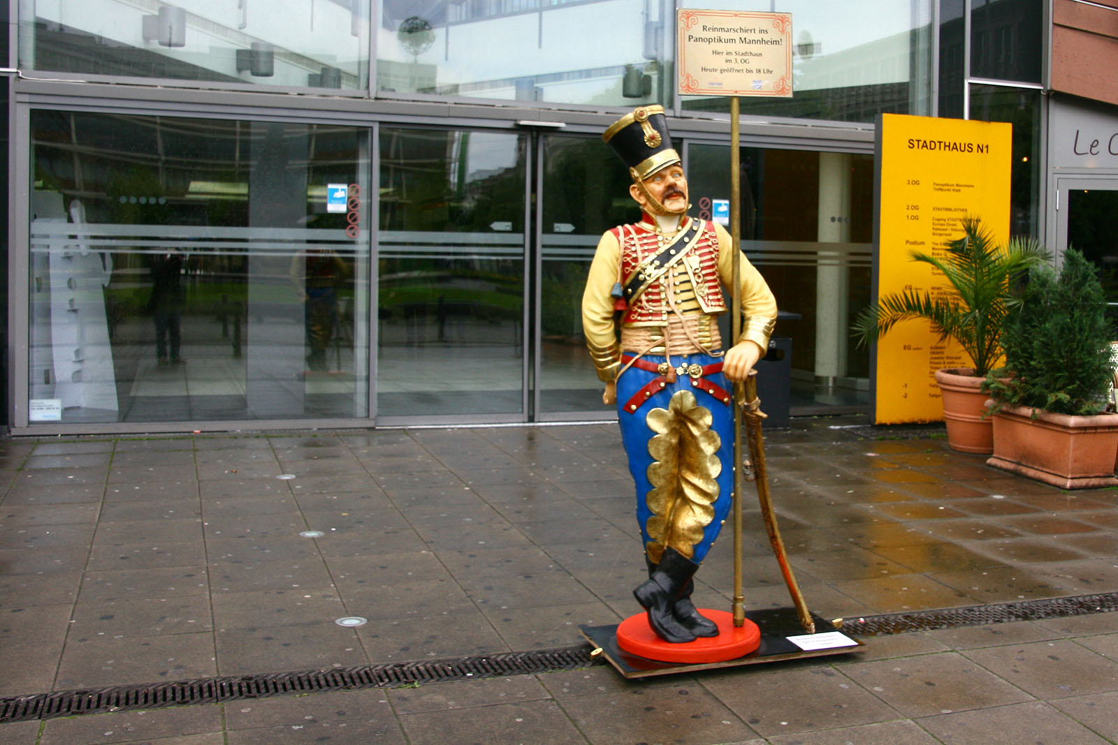 Das Kunstwerk befindet sich auf dem Paradeplatz vor dem Mannheimer Stadthaus.