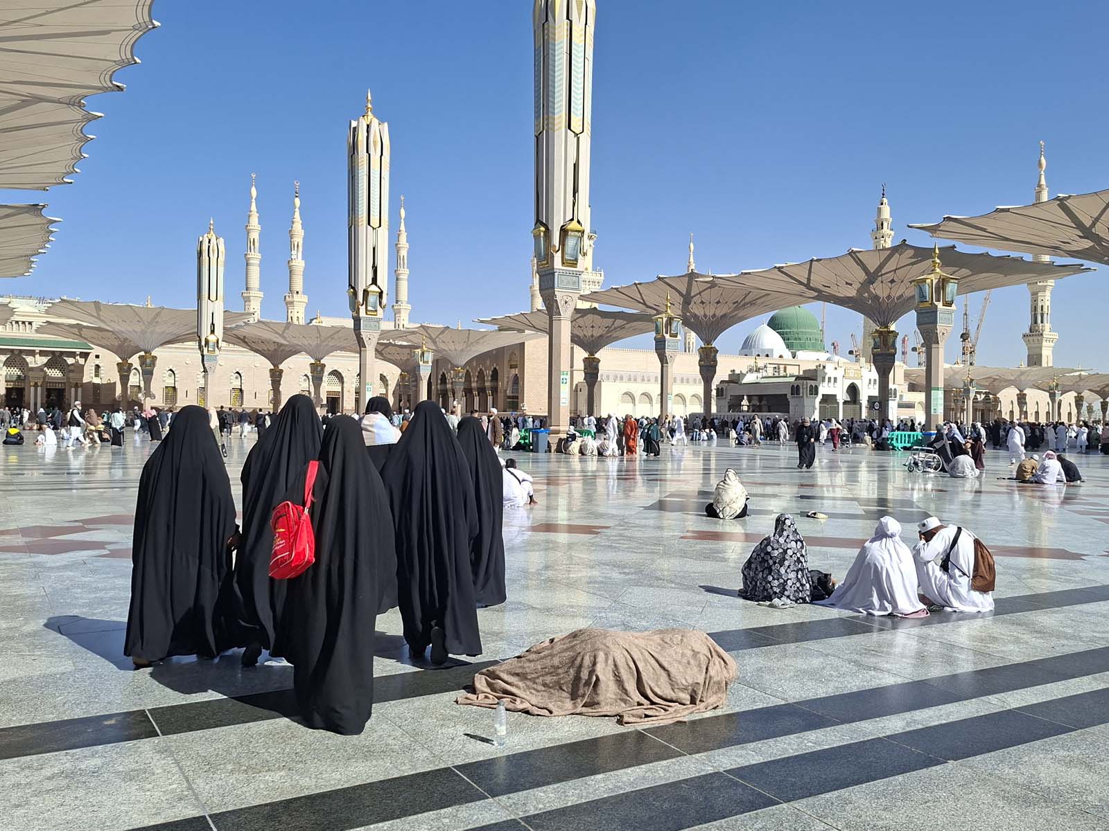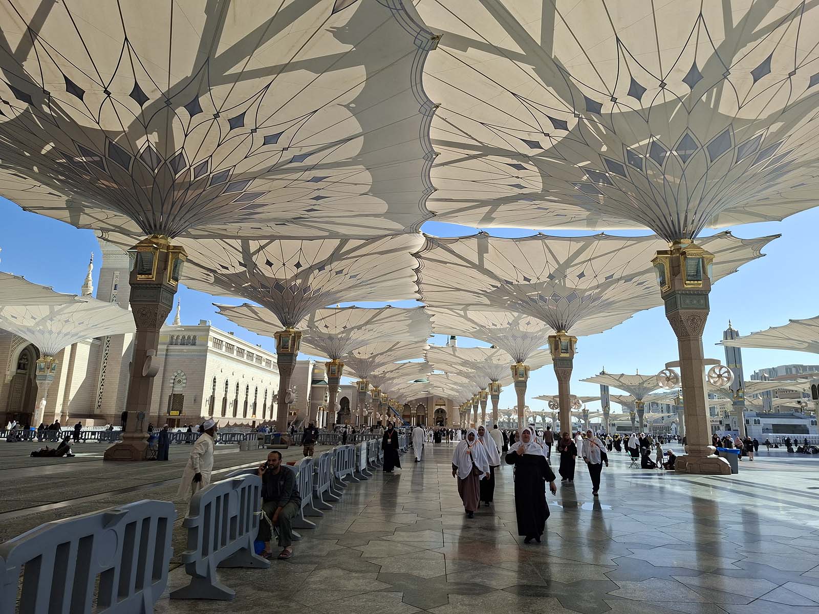 Millionen Gläubige strömen jährlich nach Medina, sodass die Prophetenmoschee die Massen nicht mehr bewältigen kann. Daher haben Ingenieure der Firma SL-Rasch GmbH in Leinfelden-Echterdingen 250 hydraulisch ausklappbare Riesenschirme aus PTFE-Gewebe mit einer Höhe von 15 m auf dem Vorplatz der Moschee als Sonnenschutz aufgestellt. Die Schirme schaffen eine schattige Fläche von 143.000 m²