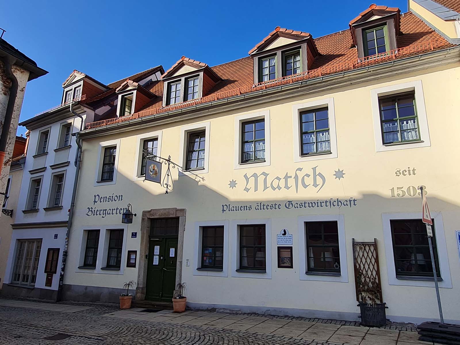 Die Gastwirschaft Matsch wurde im Jahr 1503 das erste Mal urkundlich erwähnt. Der Name stammt von der bei der Bierbrauerei anfallenden Maische. Die Gastwirtschaft befindet sich in der Nobelstraße neben dem Vogtlandmuseum und dem Erich-Ohser-Haus. Heutzutage befindet sich neben der Gastwirtschaft ein Hotel, das per Handy im Voraus bezahlt werden muss und nur damit zugänglich ist. Archäologische Funden zeigen, dass es hier Vorgängerbauten aus dem 12. und 13. Jahrhundert gegeben hatte, in denen u.a. Bier gebaut wurde, das in den Kellermn der angrenzenden Stadtmauer gekühlt wurde.