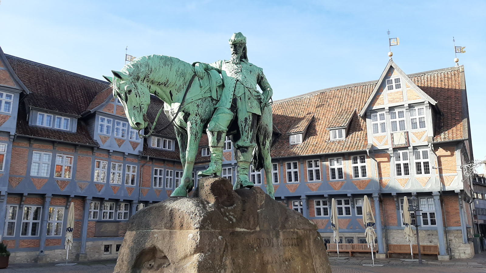 Wolfenbüttel, Stadtmarkt mit dem Reiterdenkmal von Herzog August